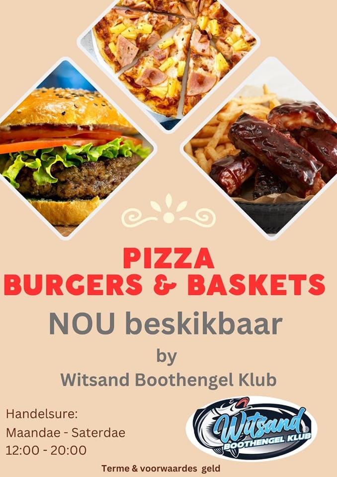 Pizza, Burgers and snack baskets available.